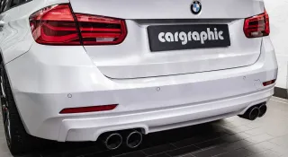 - Original BMW F31 LCI Heckschürze für Fahrzeuge mit PDC (Original Teile Nummer: 51122295238), hochwertig lackiert in BMW Mineralweiss Metallic, vormontiert mit: