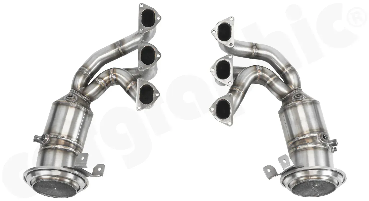 CARGRAPHIC Fächerkrümmersatz RACING mit 200cpsi Katalysatoren und strömungsoptimierten Otto Partikel Filtern SS304L