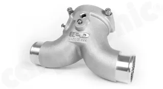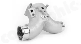 - 1x IPD Intake Plenum, aus gegossenem Aluminium in strömungsoptimierter Y-Form. Zur Verwendung mit Ø76mm Serien-Drosselklappe