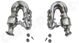 - CARGRAPHIC Hochleistungs-Fächerkrümmersatz mit 2" / 50,8mm Primärrohrdurchmesser und 2x Ø120mm 100 Zellen HD PE Motorsport Katalysatoren