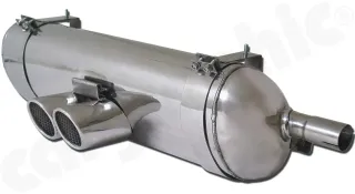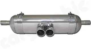 - CARGRAPHIC Sport Doppelendrohr, 89mm rund, 23° schräg eingerollt mit perforiertem Einsatz. Ausführung: Edelstahl poliert