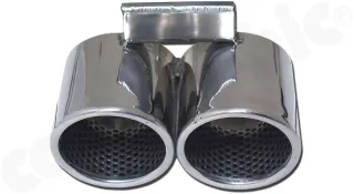 - CARGRAPHIC Sport Doppelendrohr, 89mm rund, 23° schräg, eigerollt mit perforiertem Einsatz. Ausführung: Edelstahl poliert