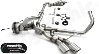 Dieses CARGRAPHIC Active Sound System ersetzt die originalen Endschalldämpfer, wodurch neben dem kraftvollen Klang auch ein verbessertes Abgasströmverhalten erzielt wird