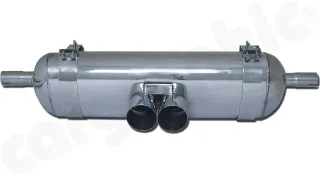 - CARGRAPHIC Sport Doppelendrohr, 89mm rund, 23° schräg geschnitten. Ausführung: Edelstahl poliert