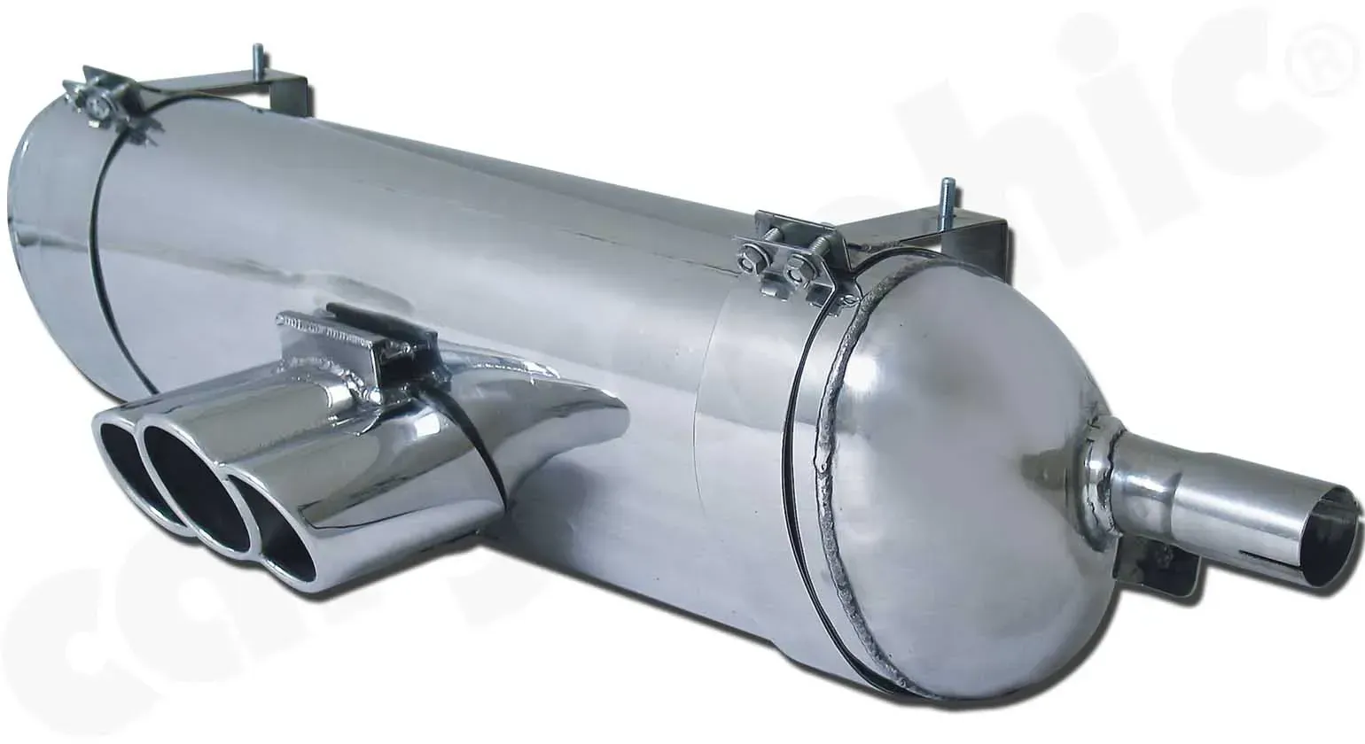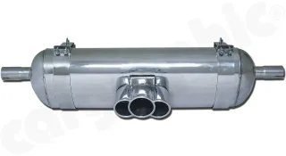 - CARGRAPHIC Sport Endschalldämpfer "Tri-Pipe"- Endrohr, 23° schräg eingerollt, mit perforiertem Einsatz. Ausführung: Edelstahl poliert
