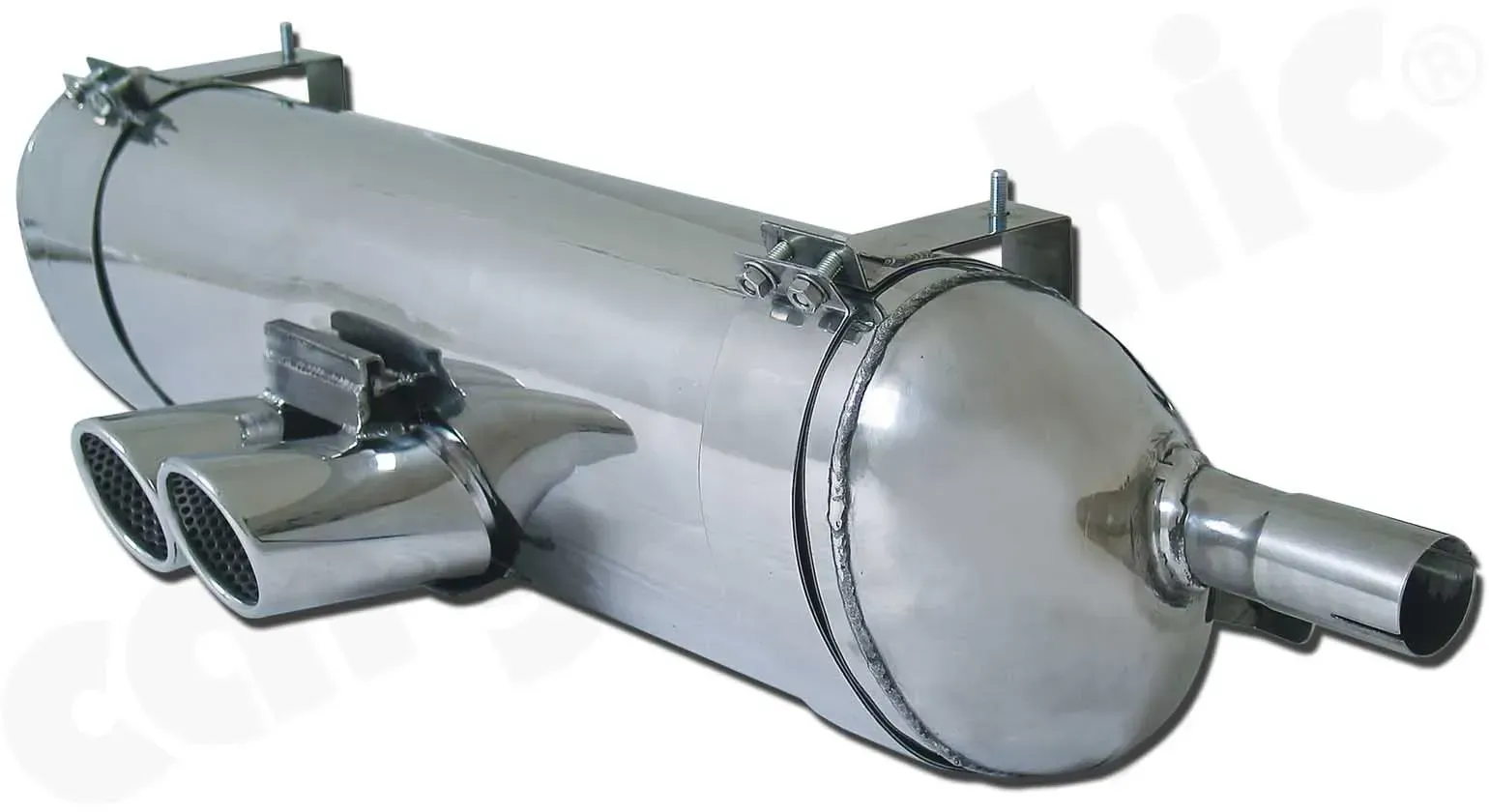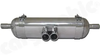 - CARGRAPHIC Sport Doppelendrohr, 76mm rund, 23° schräg eingerollt, mit perforiertem Einsatz. Ausführung: Edelstahl poliert