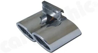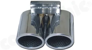 - CARGRAPHIC Sport Doppelendrohr, 76mm rund, 23° schräg, eigerollt mit perforiertem Einsatz. Ausführung: Edelstahl poliert